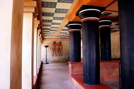 Τοιχογραφία του «γαλάζιου πουλιού»Από τις αρχαιότερες και σημαντικότερες τοιχογραφίες, που βρέθηκαν στη λεγόμενη «Οικία των τοιχογραφιών» της Κνωσού είναι αυτή του «γαλάζιου πουλιού». Σώζεται πολύ αποσπασματικά και είναι βέβαιο ότι ανήκε σε μεγαλύτερη σύνθεση, που κοσμούσε τους τοίχους του κτηρίου. Στο κέντρο της παράστασης και σε λευκό βάθος δεσπόζει ένα γαλάζιο πουλί καθισμένο επάνω σε βράχο. Από τη μορφή του σώζονται μόνο τμήμα των φτερών και τα μικρά πόδια του. Το τοπίο γύρω του είναι ιδιαίτερα εντυπωσιακό και αποδίδεται με διάφορα έντονα χρώματα. Στα θραύσματα που σώζονται διακρίνονται κυρίως βράχια, άγρια ρόδα και ίριδες. Το έργο χαρακτηρίζεται από την ελευθερία στην απόδοση των περιγραμμάτων, από τη μεγαλειώδη έκφραση της φυσιοκρατίας και από την εναλλαγή έντονων χρωμάτων. Η σκηνή σφύζει από ζωντάνια, όμως αποπνέει εξαιρετική ηρεμία και αρμονία.