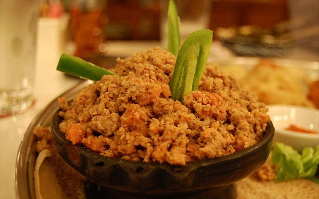 Ωμός μοσχαρίσιος κιμάς, μπαχαρικά της Αιθιοπίας και λίγο βούτυρο με βότανα είναι τα απαραίτητα υλικά για το kitfo, το οποίο –όπως άλλωστε πολλά πιάτα της συγκεκριμένης κουζίνας- τρώγεται συνήθως με injera, ένα σπογγώδη τύπο ψωμιού. Συχνά συνοδεύεται με μικρά κομμάτια κατσικίσιου τυριού για περισσότερη γεύση και μπορεί να σερβιριστεί και ελαφρώς μαγειρεμένο, αλλάζοντας την ονομασία του σε kitfo leb leb.