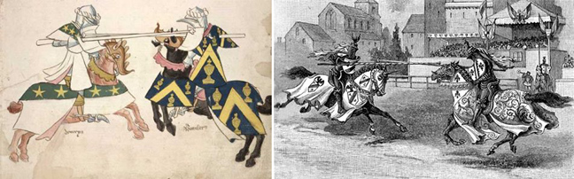 Μεσαιωνική εξέλιξη των μονομαχιών στην αρένα, οι ιππομαχίες με τις λόγχες παρέμεναν εξίσου επικίνδυνες με τον ρωμαϊκό προκάτοχό τους: δύο ιππότες συγκρούονταν κατά μέτωπο προσπαθώντας να ρίξει ο ένας τον άλλο από τη σέλα, με τους σοβαρούς τραυματισμούς και τον θάνατο να είναι στην ημερήσια ατζέντα του δημοφιλέστατου σπορ που ξέρουμε όλοι, καθώς είναι συνυφασμένο με την ιπποτική Ευρώπη του Μεσαίωνα.