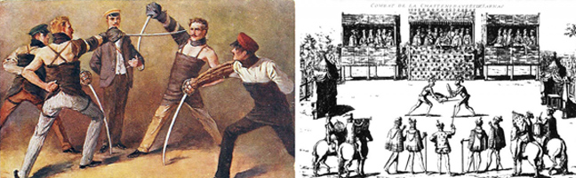 Σύντομα βέβαια η μονομαχία ξέφυγε από κάθε λογικό έλεγχο και ήταν πλέον η ιδανική μέθοδος για να ξεκαθαρίζουν οι λογαριασμοί, να υπερασπίζεται η τιμή και να αποφασίζεται ποιος θα κέρδιζε το χέρι της πέτρας του σκανδάλου.