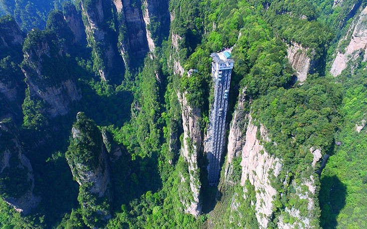 Το όνομά του σημαίνει «ανελκυστήρας των εκατό δράκων» και είναι το η εντυπωσιακή προσθήκη, από ανθρώπινο χέρι, στο Δασικό Πάρκο Zhangjiajie στην Κίνα, μνημείο παγκόσμιας κληρονομιάς της Unesco.