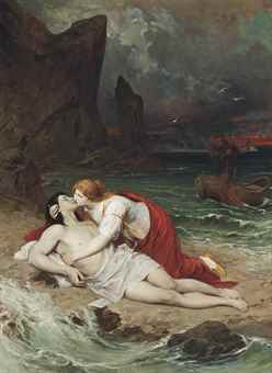Με τούτα πλάνησε τον νου της κόρης άθελά της·τα λόγια αγάπη γέννησαν και πήρε την καρδιά της.160Αμίλητη, τα μάτια της έγειρε η κόρη κάτω,τα μάγουλα, που ντροπαλά κοκκίνιζαν, να κρύψει·κι έξυνε με τ᾽ ακρόχναρο την γη και ντροπιασμένη,όλο και το χιτώνι της εμάζευε στους ώμους.Τούτα θα πουν πως άρχισε μια κόρη να συγκλίνει·165αγκαλιάν μόνον και φιλί σού τάζει η σιωπή κείνη.Τώρα και το γλυκόπικρο κεντρί του Πόθου εδέχθηκι άναψ᾽ η κόρη από γλυκιά φωτιά μες στην καρδιά της,και του Λεάνδρου οι ομορφιές την εψυχομαράναν.Κείνος, όσο την όψην της σκυφτή καταγής είχε,170τόσο και δεν εχόρταινε με λιγωμένα μάτιατης κόρης τον χιονόλαιμο ν᾽ ακριβοκαμαρώνει,ώσπου άνοιξε το στόμα της κι εγλυκαπολογήθη·και κοκκινάδι απόσταζε ντροπής το πρόσωπό της.«Ξένε, εσύ με τα λόγια σου θ᾽ ανάγερνες και πέτρα.175Ποιός σ᾽ έμαθε να λες αυτά τα πλανερά λογάκια;Ποιός (συμφορά μου) σ᾽ έφερε μες στον δικό μου τόπο;Μόν᾽ όλα τα ᾽πες άδικα· τι πώς, καλέ, περάτης,άνθρωπος ξένος κι άπρακτος μαζί μ᾽ εμέ θα σμίξεις;Να παντρευτούμε φανερά με γάμο τιμημένο180δεν ημπορούμε· να σ᾽ το πω: δεν θέλουν οι γονιοί μου.Αν πάλι θέλεις στην Σηστό να πολυμπαινοβγαίνεις,δεν δύνασαι παραχωστά να κρύβεις την αγάπη·του κόσμου η γλώσσα το κακό πάντ᾽ αγαπάει να λέεικι ό,τι σιγά κάμει κανείς μες στα στενά τ᾽ ακούει.185Μα χάρισέ μου τ᾽ όνομα και τον καλό σου τόπο·μη μου το κρύψεις· πως με λεν εμένα Ηρώ το ξεύρεις.Μονή μου ουρανοκόλλητος και βοερός πύργος είναικαι μέσα εκεί μονόψυχη με μιαν κάθομαι βάγιαπερίγιαλα και ξέχωρα· κι έχω γειτόνισσά μου190την θάλασσα όπως ήθελαν οι άσπλαχνοι οι γονιοί μου.Δεν μου είν᾽ εκεί συνήλικες, ουδέ χοροί δεν είναι,κι ολήμερα κι ολόνυκτα πάντα δονά στ᾽ αυτιά μουτο βογκητό της θάλασσας, της ανεμοδαρμένης».Όσο και τα ᾽πεν, έκρυψε την όψη στην ποδιά της195τι ξαναντράπη μόνη της και καταγνώννει ό,τι είπε.