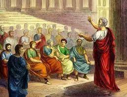 Σε λίγο αγέρωχοι οι μνηστήρες μπήκαν κι αυτοί στην αίθουσα,