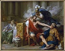 αλλά στη μέση μπήκε ο Θεοκλύμενος θεόμορφος μιλώντας: