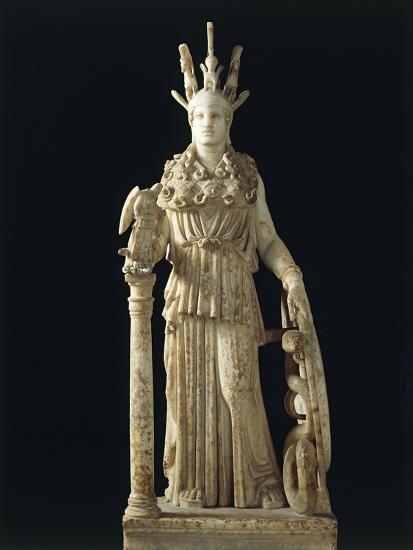 Το αντίγραφο του χρυσελεφάντινου αγάλματος ανακαλύφτηκε το 1880 στο Βαρβάκειο Λύκειο γι’ αυτό ονομάζεται Αθηνά Παρθένος του Βαρβακείου. Έχει ύψος 1,05 και χρονολογείται τον 2ο αιώνα π.κ.ε.